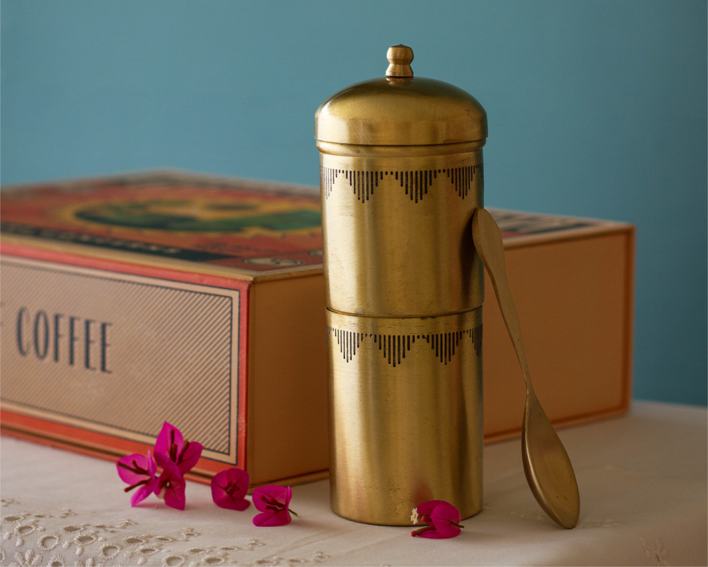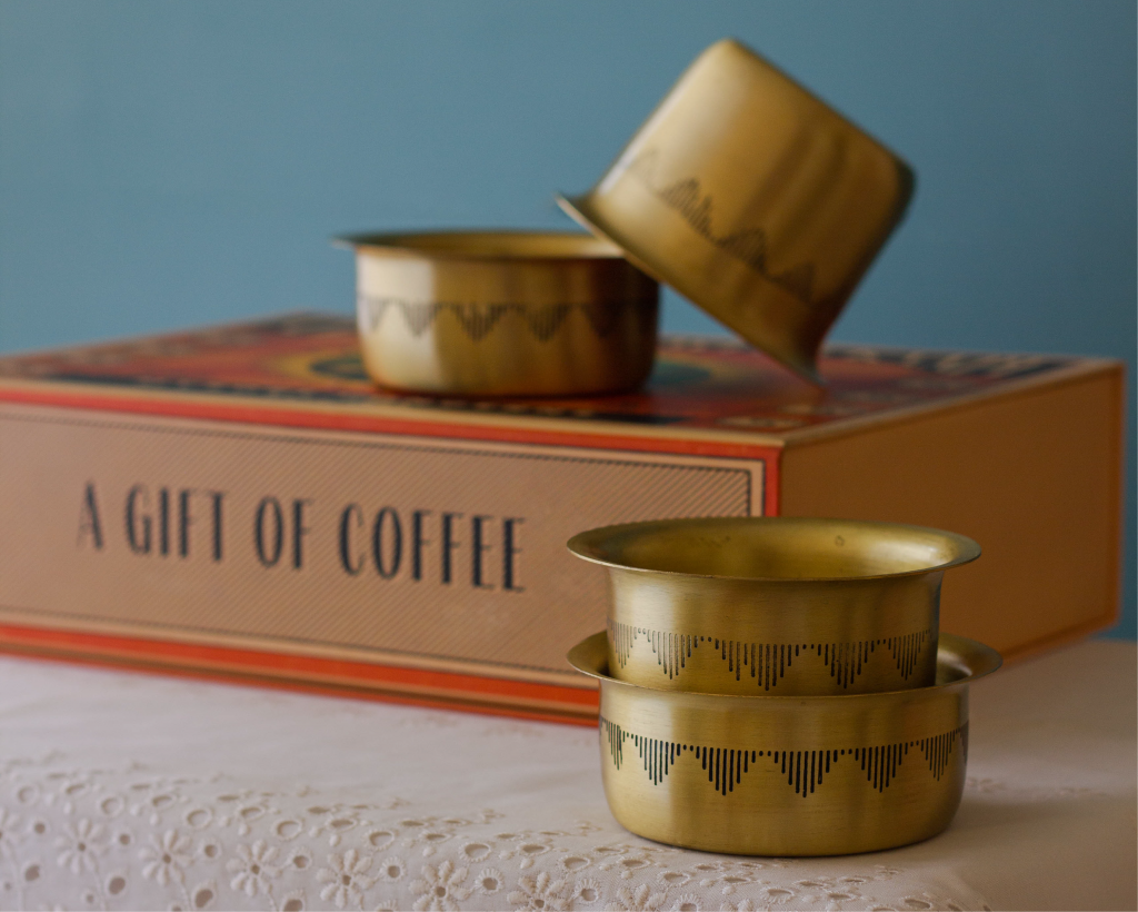 Introducing limited edition artisan handcrafted brass Indian Filter and Davara sets, a perfect gift for coffee lovers. Luxurious yet practical, worthy of being passed down as a family heirloom.