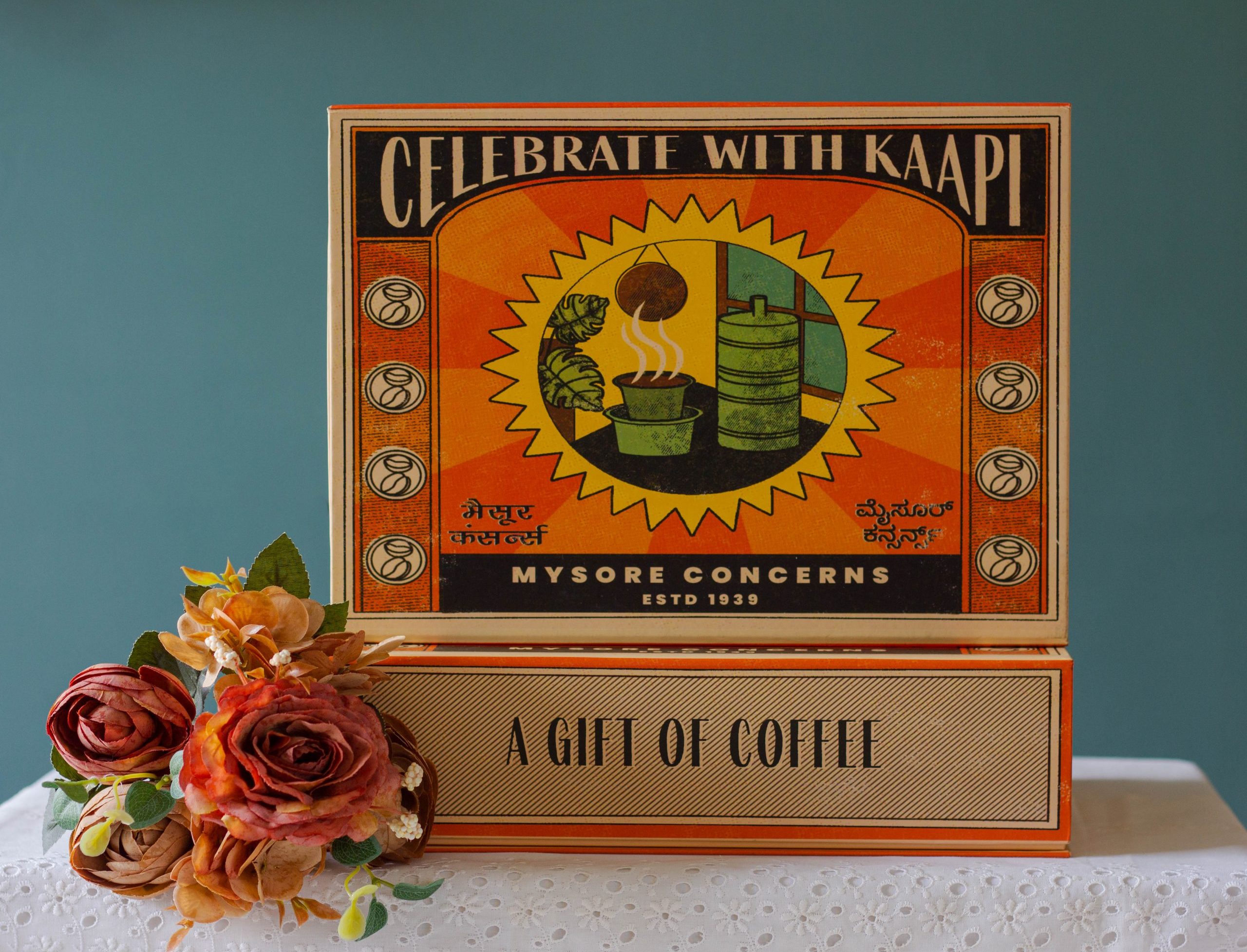 Contains: 2 X 250 gm of your choice of Mysore Concerns coffee, Custom Scented Candle, Steel Filter (2 cup capacity)